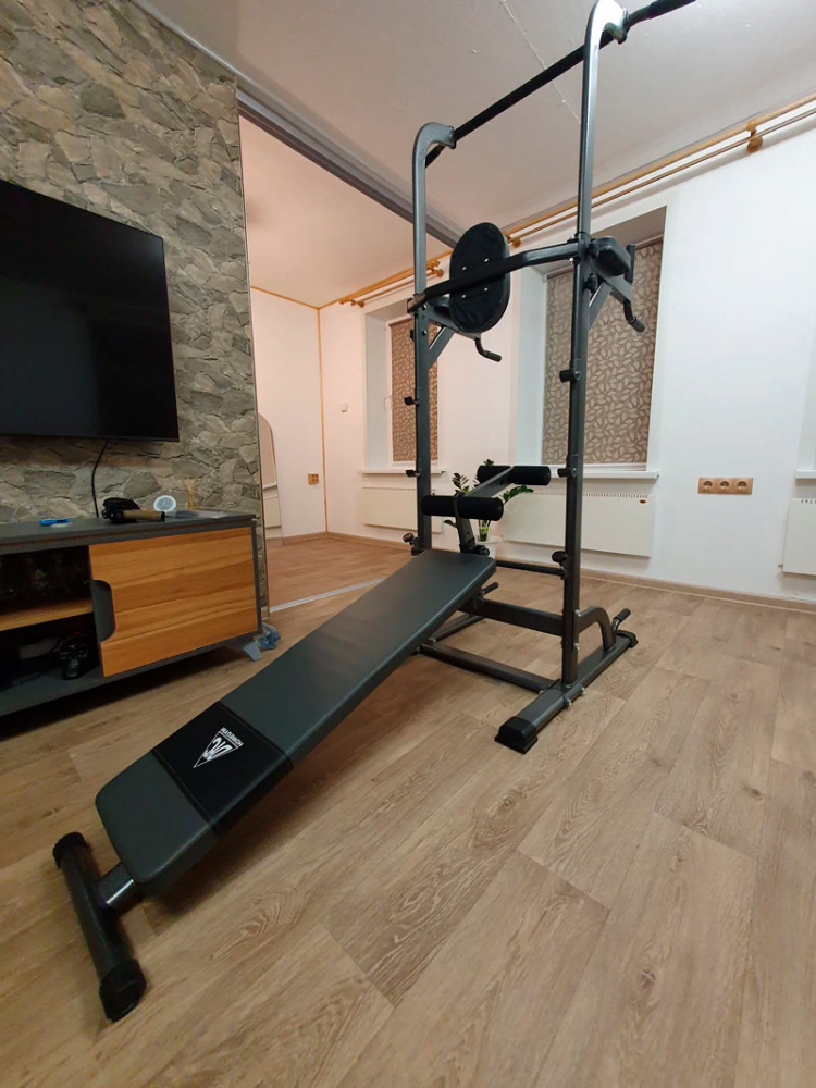 Вынесенные вперед на значительное расстояние брусья не стесняют спортсмена в выборе положения для выполнения отжиманий. Их удобно будет делать, как находясь лицом к тренажеру, так и спиной к нему.